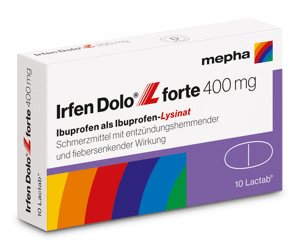 Von Mepha gibt es beispielsweise Irfen Dolo® L forte, welches 400mg Ibuprofen pro Filmtablette enthält. Die Filmtabletten sollten unzerkaut mit ausreichend Wasser eingenommen werden.